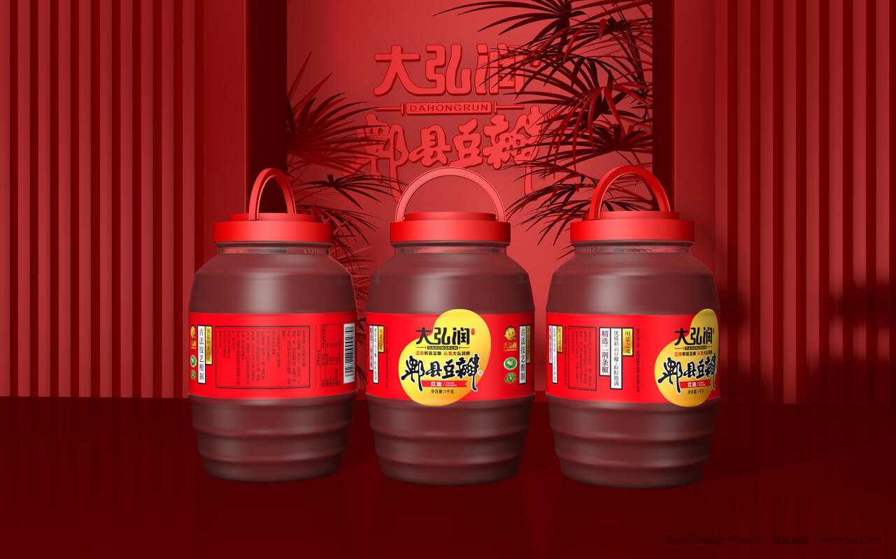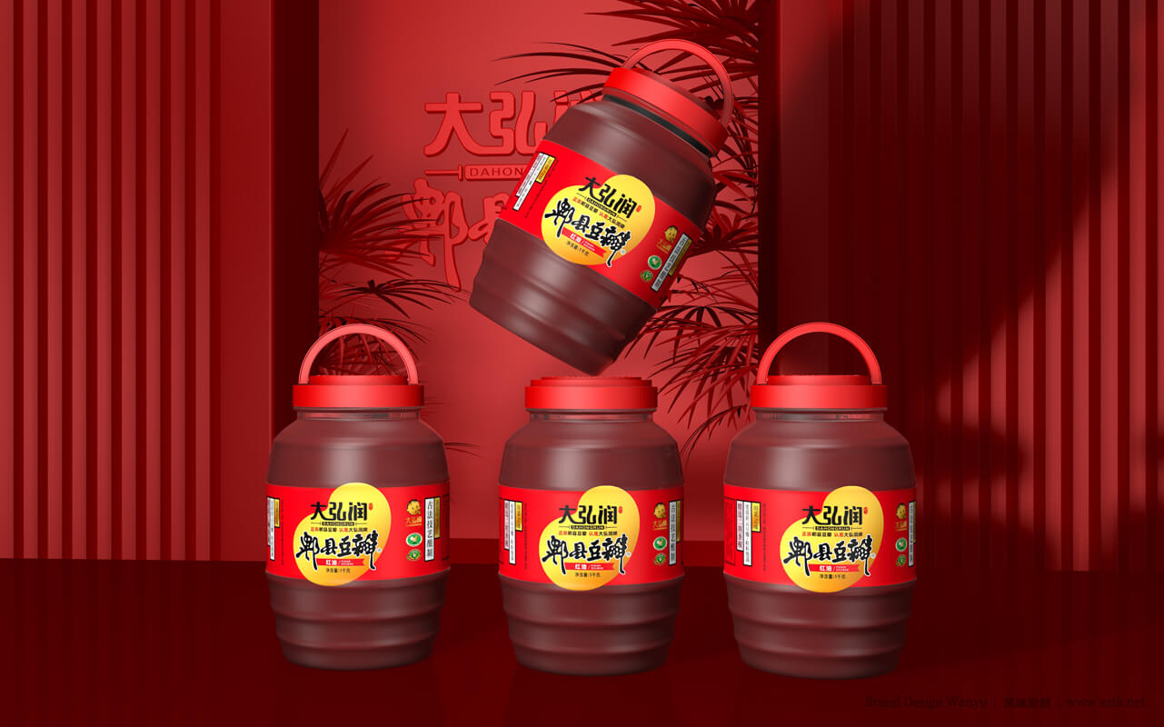 郫县豆瓣是成都市郫都区(旧称郫县)的特产,也是中国地理标志产品。郫县豆瓣是中国顶尖调味料之一,其在选材与工艺上独树一帜,与众不同,香味醇厚却未加一点香料,色泽油润,全靠精细的加工技术和原料的优良而达到色、香、味俱佳的标准。郫县豆瓣具有辣味重、鲜红油润、辣椒块大、回味香甜的特点,是川味食谱中常用的调味佳品,有“川菜之魂”之称。其制作技艺列第二批国家级非物质文化遗产名录。郫县豆瓣香味醇厚却未加任何香料,色泽油亮红润却无任何油脂,全靠优良的原料和精细的加工技术,从而达到色、香、味俱佳的效果,极具辣味重、鲜红油润、回味香醇悠久的特点,从而成为川菜必备的调味佳品,获“川菜之魂”之美誉。万域创作团队为郫县豆瓣包装设计,调味品包装设计,豆瓣酱包装设计,辣椒酱包装设计,特产包装设计公司创意出色形象。